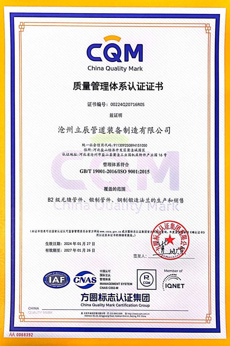 作為一家集研發(fā)、制造、銷售于一體的管件解決方案供應(yīng)商,滄州立辰管道始終秉持“匠心制造,品質(zhì)為先”的理念。公司引進(jìn)自動化生產(chǎn)線及數(shù)字化檢測設(shè)備,并組建專業(yè)技術(shù)團隊,在耐高壓、耐腐蝕等特種管件領(lǐng)域形成獨特優(yōu)勢。此次雙認(rèn)證的通過,不僅是對現(xiàn)有實力的肯定,更為企業(yè)拓展石油、天然氣、市政工程等高端市場提供了資質(zhì)保障。