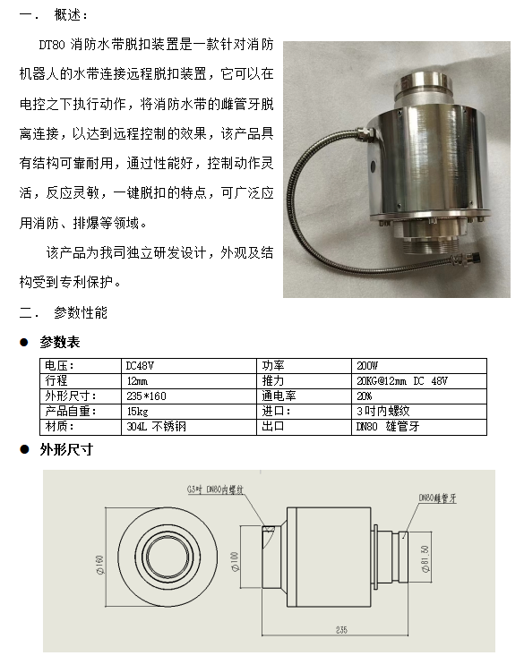 北京DT80消防水帶電脫扣裝置